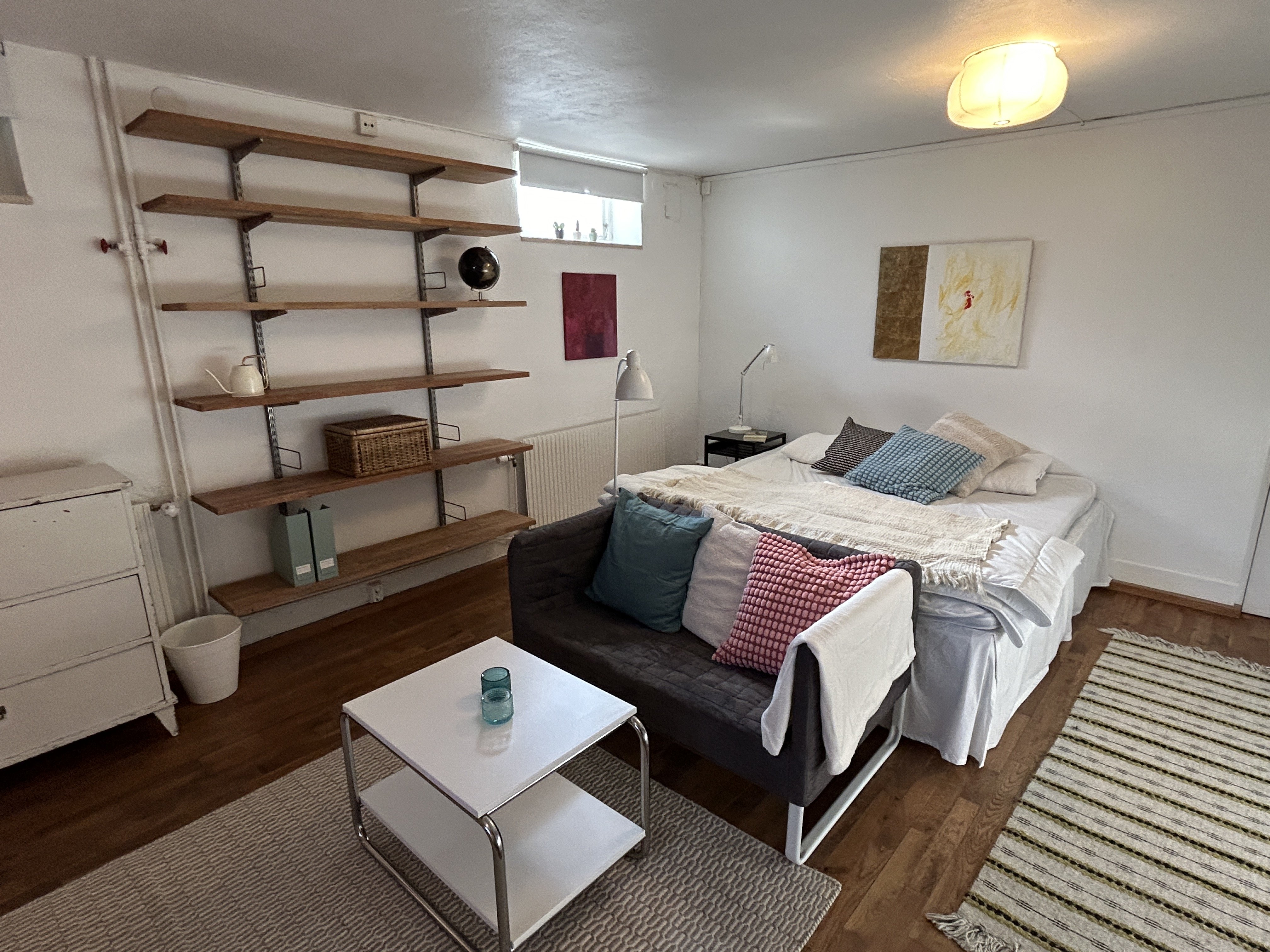 Stort och smakfullt inrett rum med egen ingång i villa i lugna och lummiga kvarter. Matplats, soffhörna och arbetsvrå med skrivbord. Egen toalett och dusch i gemensam tvättstuga som kan låsas vid användning. El, vatten, värme och wifi ingår i hyran. Goda kommunikationer med buss eller Roslagsbanan inom några minuters promenad.