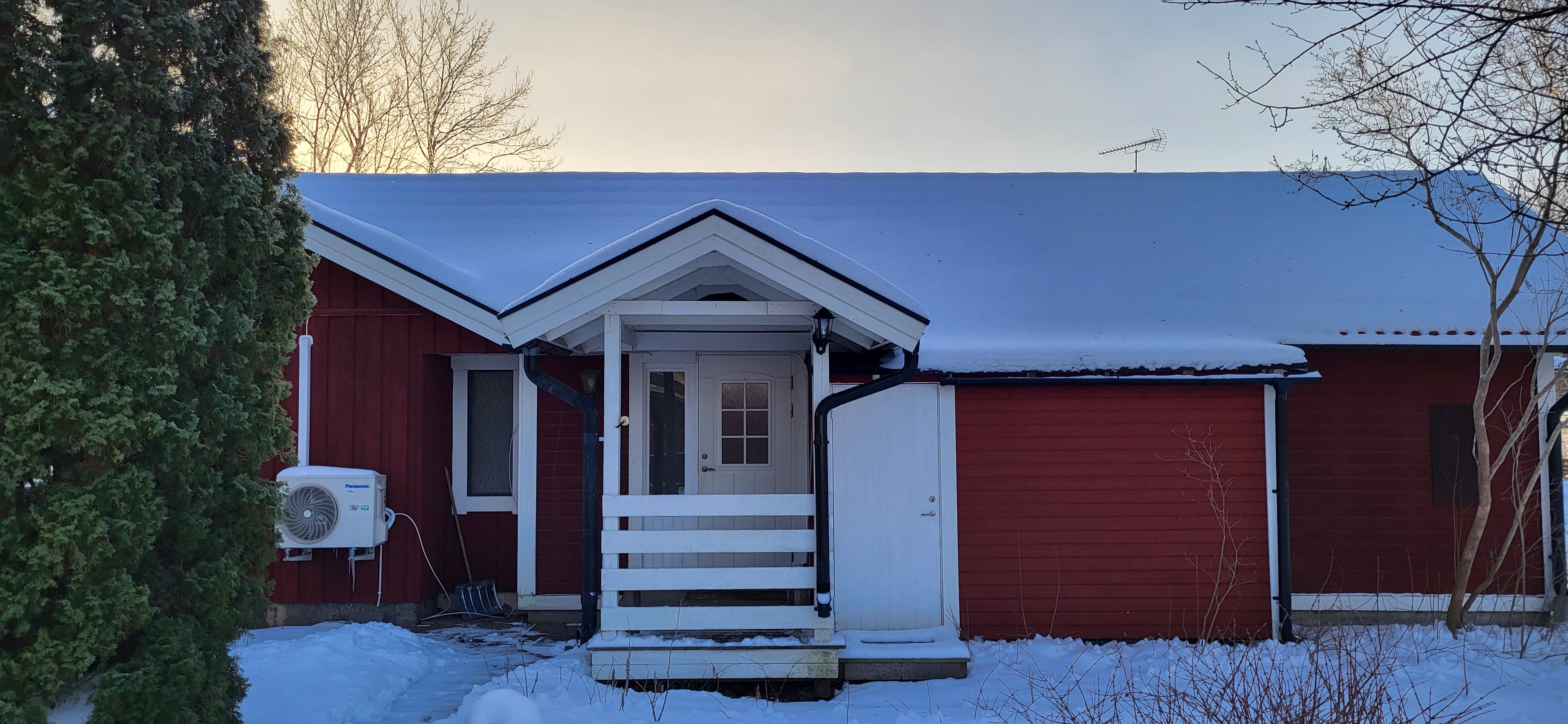 Hej Vi hyr ut ett hus på tomten. Huset är cirka 100 kvm. Det finns möjlighet att parkera på tomten. 1 bil. Två sovrum. Ett vardagsrum, kök, badrum med tvättmaskin plus uteplats.