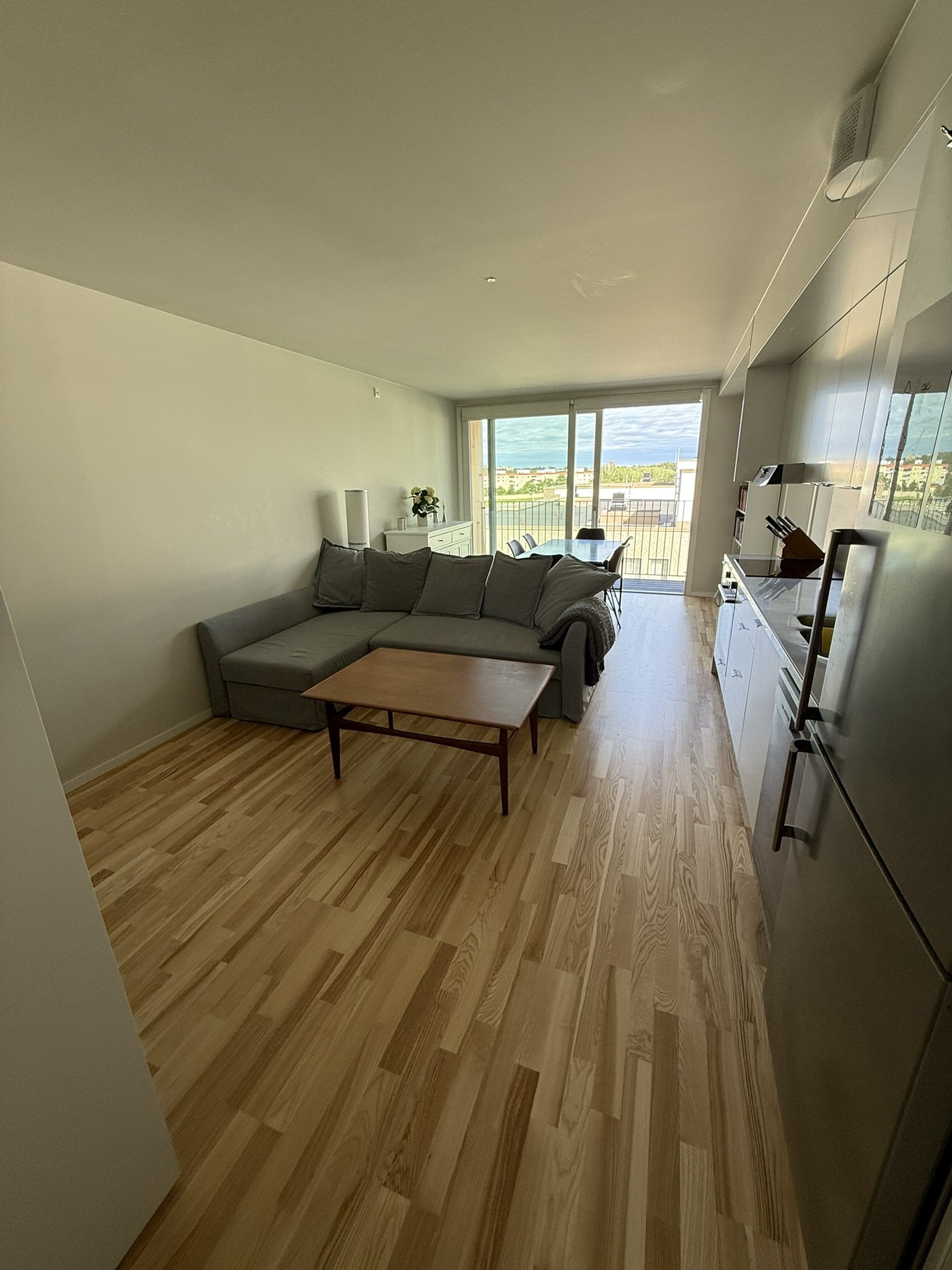 Välkommen till en modern och ljus 2,5:a med utmärkt läge! Denna stilrena och moderna lägenhet är perfekt för dig som söker ett bekvämt boende med hög standard och närhet till allt. Lägenheten erbjuder en genomtänkt planlösning, fina materialval och gott om ljusinsläpp. Hemmets hjärta Det öppna vardagsrummet och köket skapar en social och rymlig atmosfär. Vardagsrummet är en plats för avkoppling med en bekväm soffa och en smart platsbyggd hyllösning med gott om förvaring. Härifrån når du även en härlig balkong med plats för utemöbler, perfekt för att njuta av soliga dagar. Det fullt utrustade, moderna köket har släta vita luckor, en tålig bänkskiva i metall och maskiner i rostfritt stål, inklusive diskmaskin. Här kan du laga mat med stil och komfort. Sovrum och extra rum Det rymliga sovrummet är en fridfull plats med en stor säng och en imponerande, helspeglad garderob som ger gott om plats för kläder och förvaring. Lägenheten har även ett flexibelt extra rum som kan användas som ett mindre kontor eller en rymlig walk-in-closet, precis som du önskar. Badrum Det stilrena, helkaklade badrummet är utrustat med en fräsch duschhörna med glasvägg, handdukstork och ett snyggt handfat med förvaring. Läge och kommunikationer Lägenheten ligger i ett mycket attraktivt område, endast en minuts resa med Roslagsbanan till Täby Centrum eller en bekväm 10-minuters promenad. För dig som studerar eller arbetar i stan är kommunikationerna utmärkta, med goda förbindelser till Tekniska Högskolan och vidare därifrån med röda linjen. Service i närområdet I närområdet hittar du all service du kan tänka dig, inklusive matbutiker och populära restauranger. Ett stort plus är den närliggande sushirestaurangen Hangiri, som är känd som ett av Stockholms bästa sushiställen. Denna lägenhet är en perfekt kombination av stil, funktion och ett oslagbart läge!